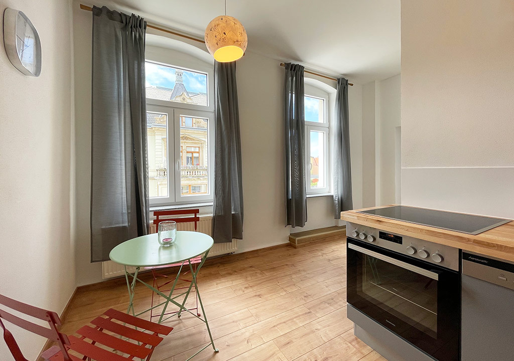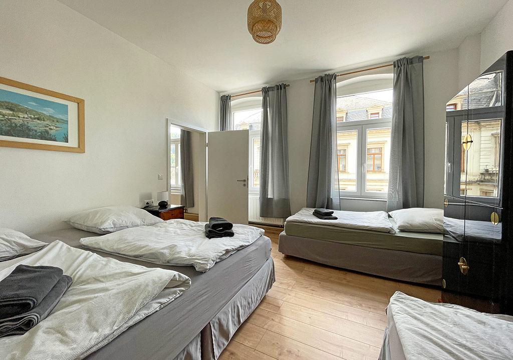 Die 70m² große Ferienwohnung in Bad Schandau, mitten in der Sächsischen Schweiz, ist perfekt für 4 Personen geeignet. Sie liegt im 1. OG eines historischen, denkmalgeschützten Hauses. Die Küche mit kleiner Sitzecke ist ausgestattet mit Herd, Backofen, Kühl-/Gefrierkombi, Kaffeemaschine, Wasserkocher und Toaster. Im Wohnzimmer mit TV befindet sich ein gemütliches Sofa und ein Esstisch. Im Schlafzimmer gibt ein Doppelbett und zwei Einzelbetten. Im Bad befindet sich eine Dusche und WC.