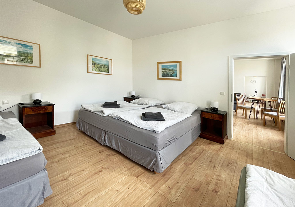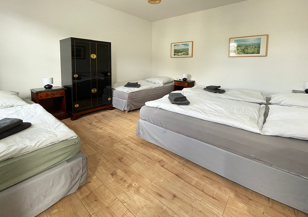 - 1 Schlafzimmer (1 x Doppelbett, 2 Einzelbetten)